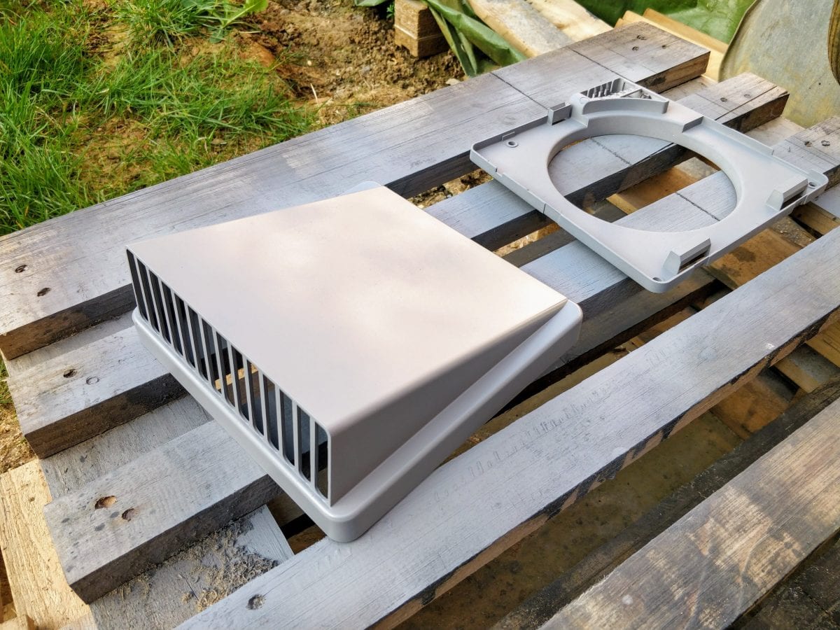 With the mounting plate installed, I decided to paint all the exterior cladding before clipping the vent cover into place and finally screwing the little timber roof down, finishing the exterior part of the installation.